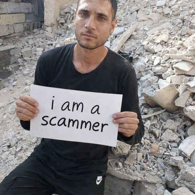 Today I am doing something different. I normally write about politics and the dangers of technology and weird biblical and occult topics but none of that matters right now because I am on a mission to expose a scammer named Mohammed who has stolen over one hundred thousand dollars from Substack users by pretending to be a starving father trapped in Gaza with children who do not exist.